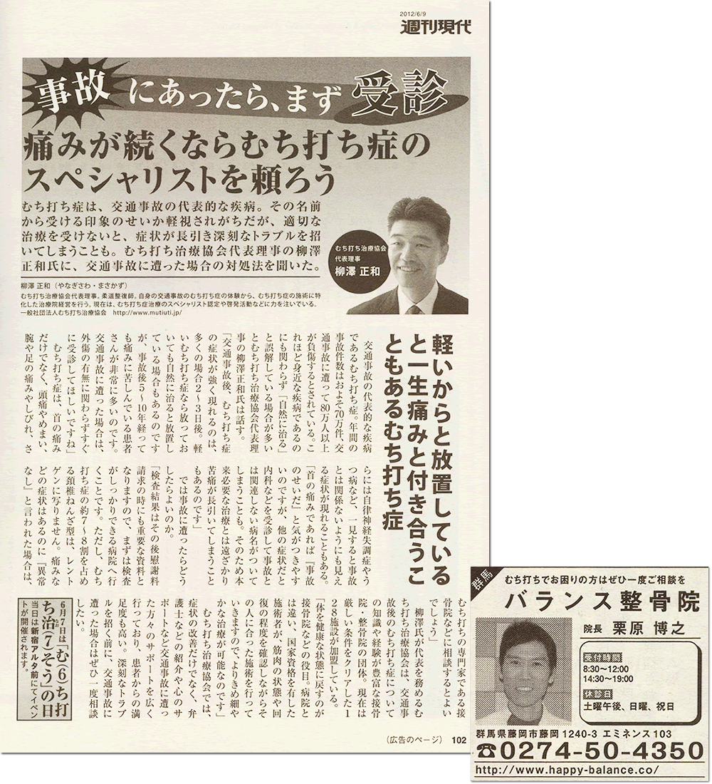 そんな時、むち打ちについてネット検索をしていたら、バランス整骨院のホームページに